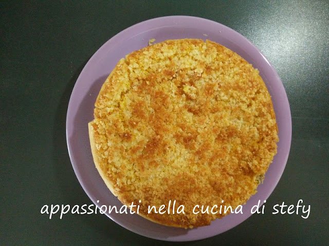Metà di questo composto l'ho messo in frigo, mentre l'altra metà l'ho cotta in un cerchio per dolci diametro 20 cm circa, in forno caldo a 180 gradi per circa 15 minuti. L'ho lasciato raffredare prima di usarlo.